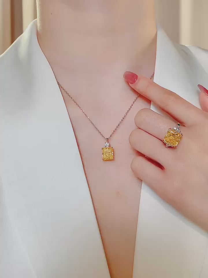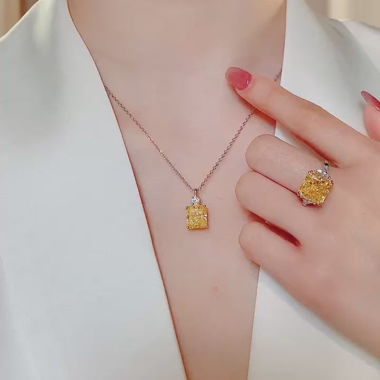 Rectangular Yellow Diamond Necklace For Women Jewelry