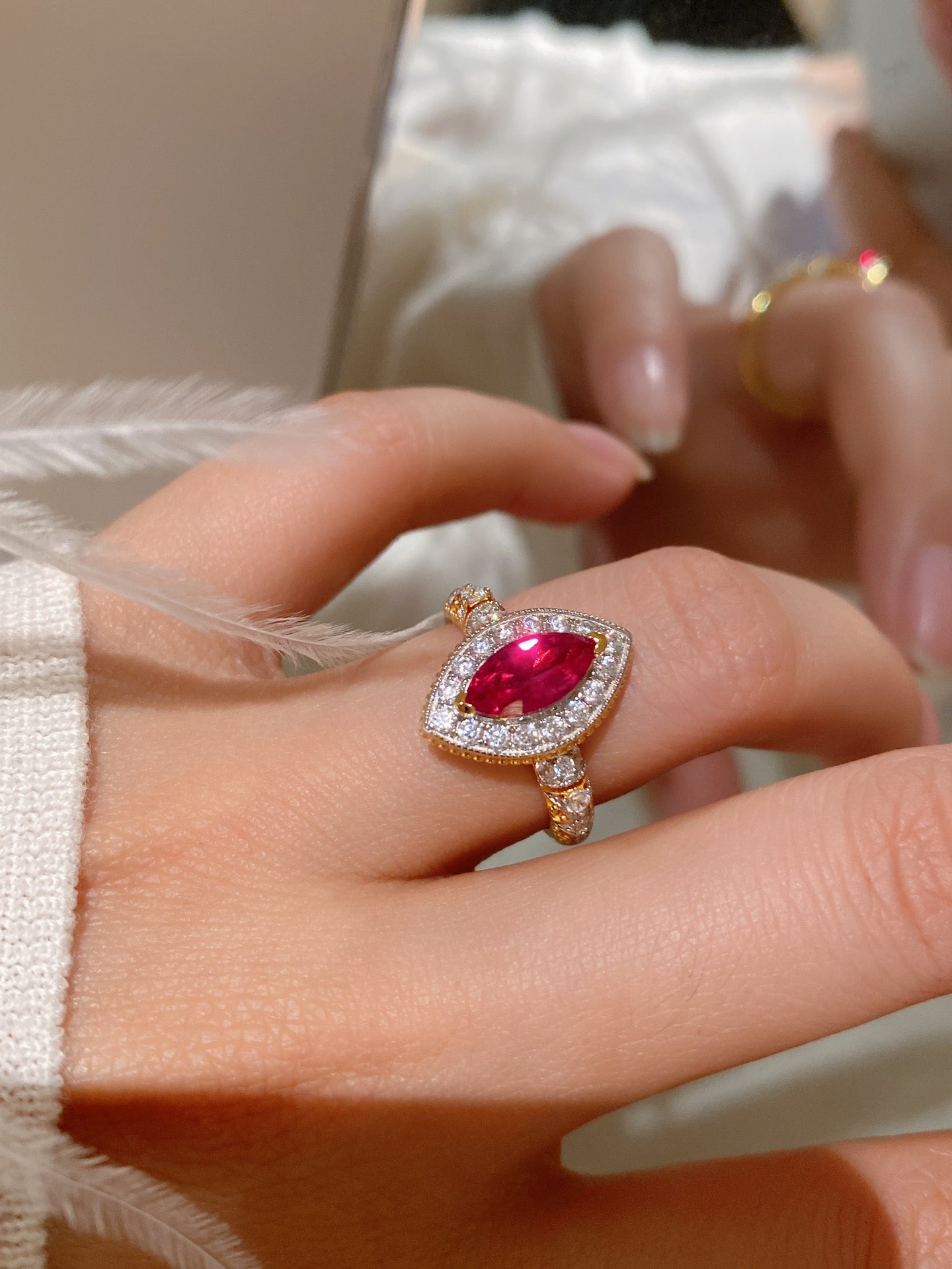 The real thing is even more beautiful than the photos! The ruby clarity is extremely high, the setting is firm, the ring is smooth and delicate, no cheap feeling, it is really the best of the best!